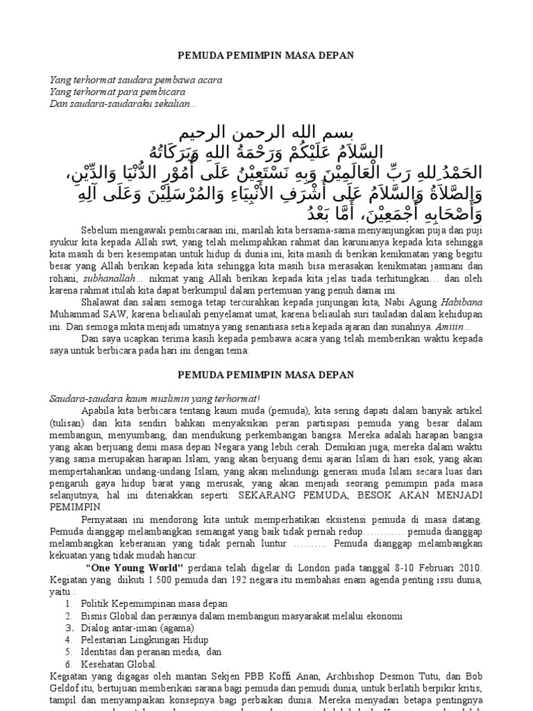 Pidato singkat tentang generasi muda lengkap terbaru.